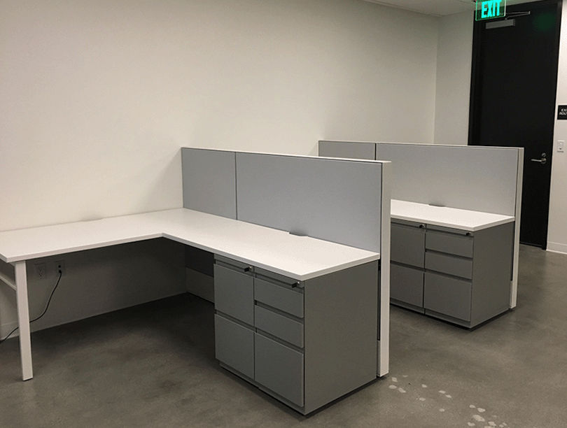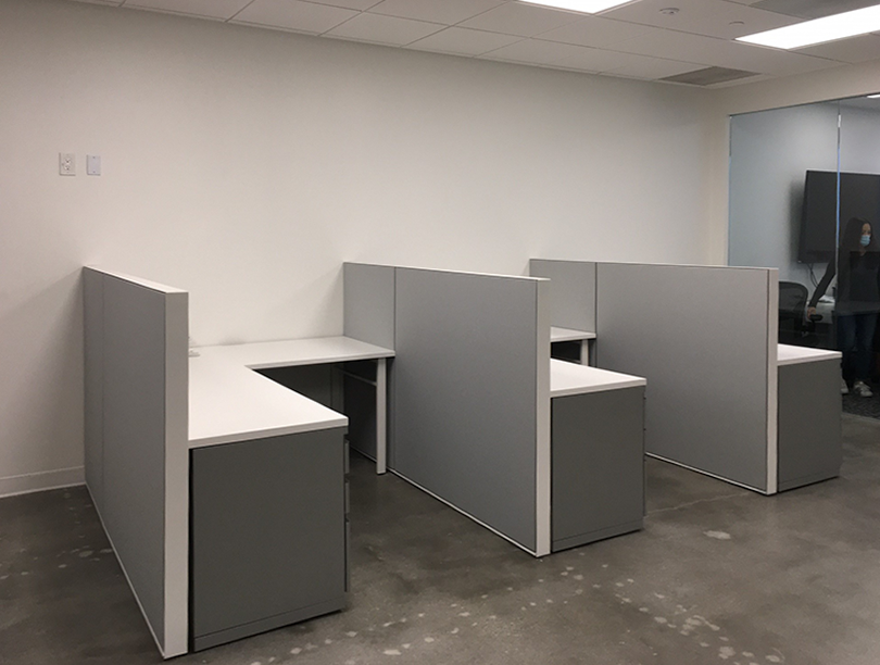 このプロジェクトの大きな課題は、オフィスエリアが入口やキッチンと隣接していた点でした。そのためワークステーションのパネルを高めに設置し、空間を区切るとともにプライバシーを確保しました。