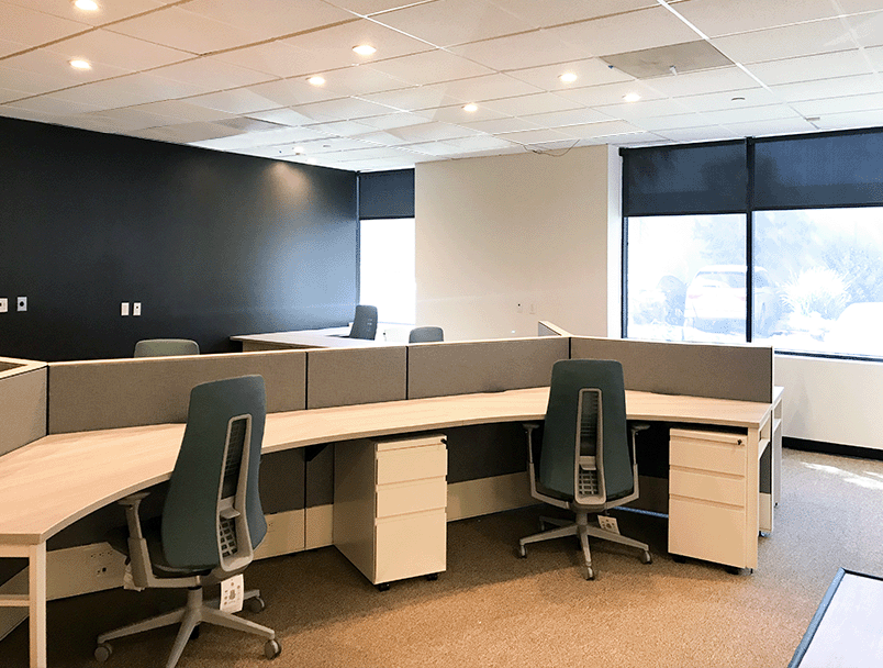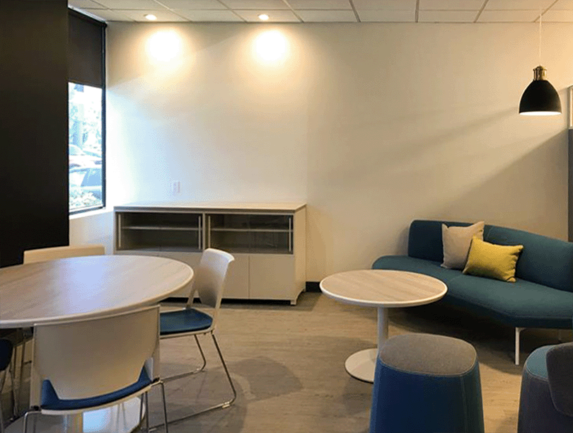 Ridex Integral Inc.のオフィスにおいて、内装工事(TI工事)と家具の供給・設置を一括で担当し、色彩や雰囲気に統一感のある空間を実現しました。天井照明には一般的な2'x2'や2'x4'のトロッファーライトではなく、夕方にジャズが流れても心地よい、調光可能なダウンライトを採用。落ち着きのある洗練されたオフィス環境を演出し、機能性とデザイン性を両立させています。細部にまでこだわり、ブランドの個性を反映した空間づくりをサポートしました。