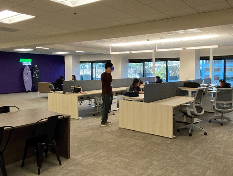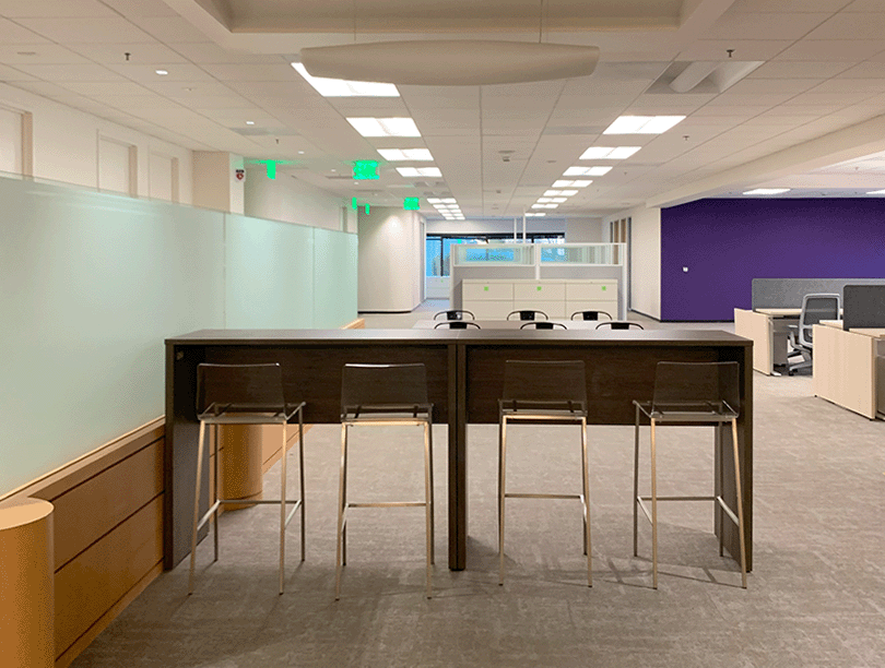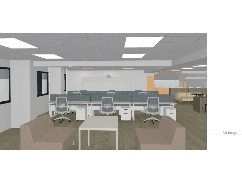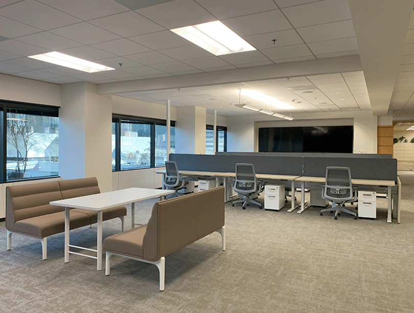This project involved a major transformation of the office, beginning with the removal of walls to create an expansive open space. Within this layout, distinct zones were established—including a lounge area, traditional panel workstations, and open-concept desks—allowing for both focused work and collaborative interaction. To reinforce the company’s identity, the corporate color was applied as an accent on the walls, complemented by furniture finishes and carpet selections that were carefully coordinated to achieve a cohesive and dynamic environment.